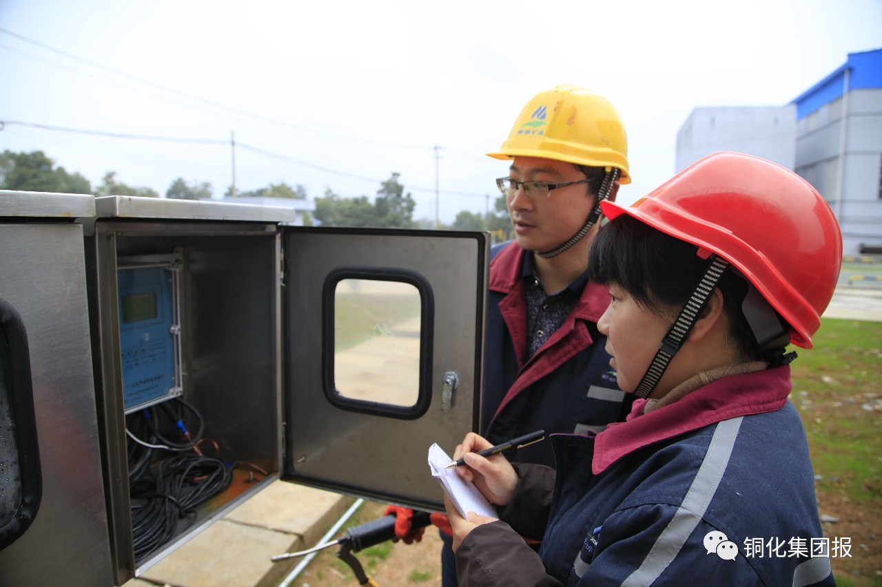 / 近日,新橋礦業(yè)公司技改擴建后的污水處理新系統(tǒng)明渠流量計柜前,兩名員工正在觀察記錄外排水流量。