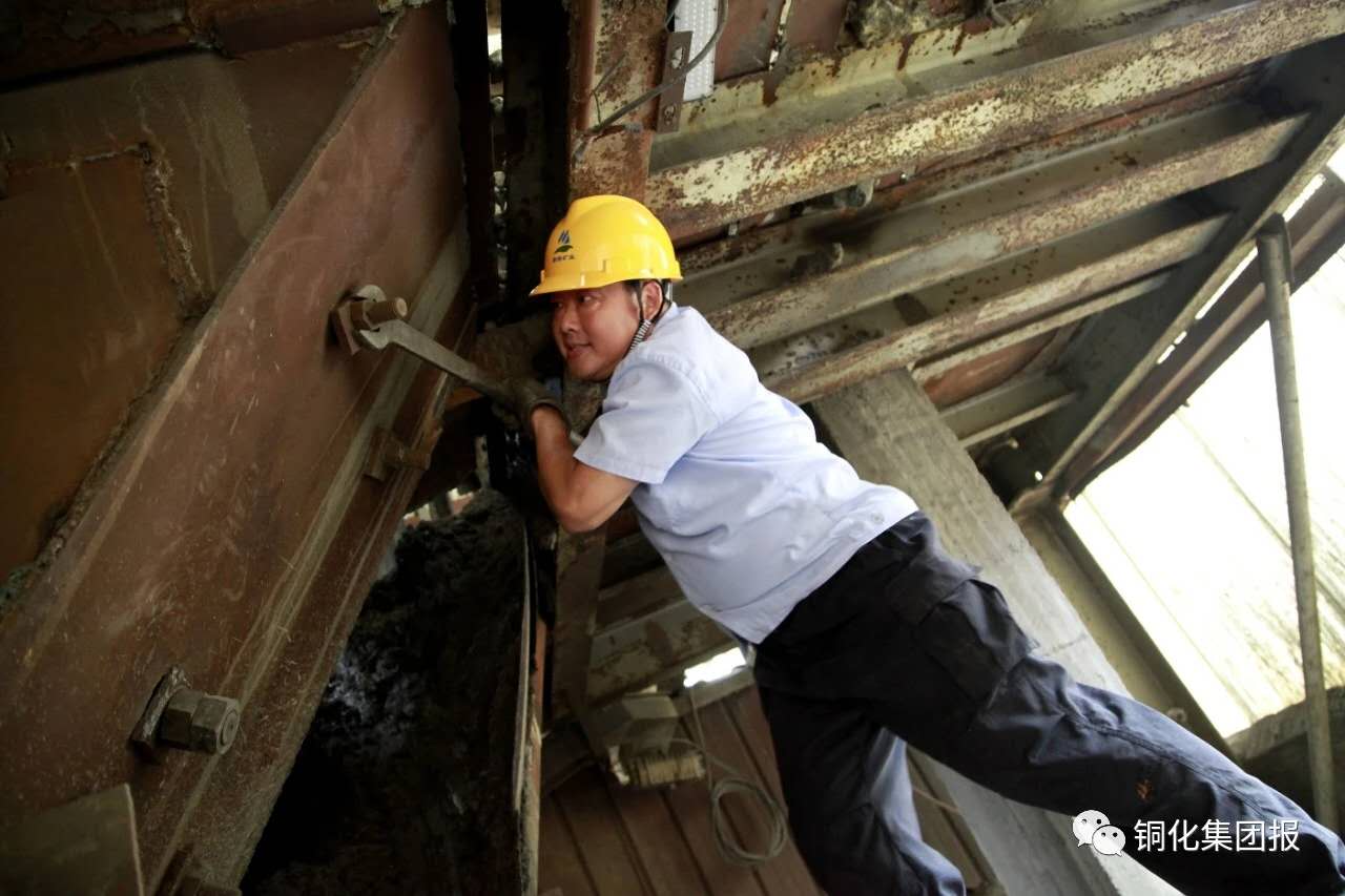 下了皮帶廊,走到主井礦倉下,老郭自豪地指著頭頂上方:“8個漏斗,過去維修和更換都是委外,現(xiàn)在都是我?guī)俗约焊伞《嗌馘X我不曉得,自己的事情就該自己干,能省一個是一個!”說到興奮時,他還掏出手機(jī)上圖片給我講2個月前他們打的一場硬仗:主井35米礦倉漏斗因礦石提運(yùn)沖擊導(dǎo)致四邊混凝土嚴(yán)重磨損,礦業(yè)公司聽取老郭的建議,準(zhǔn)備為漏斗四邊安裝4塊鋼板以保護(hù)受損的混凝土墻體。為了最大限度減少對主井出礦的影響,只給他們48小時的停產(chǎn)時間。頭一次接這大活的老郭也沒犯怵,提前準(zhǔn)備好鋼板、木條等材料,將8名維修工分成3班,白班和小夜班清漏斗、制作安裝安全護(hù)板、鑲嵌鋼板,大夜班專門焊接鋼板??辛?天的方便面,提前2小時完工將漏斗交付使用……